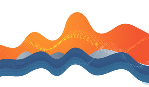 Blue and orange gradient colors wavy layer with curved and dotted lines , on white abstract background illustration